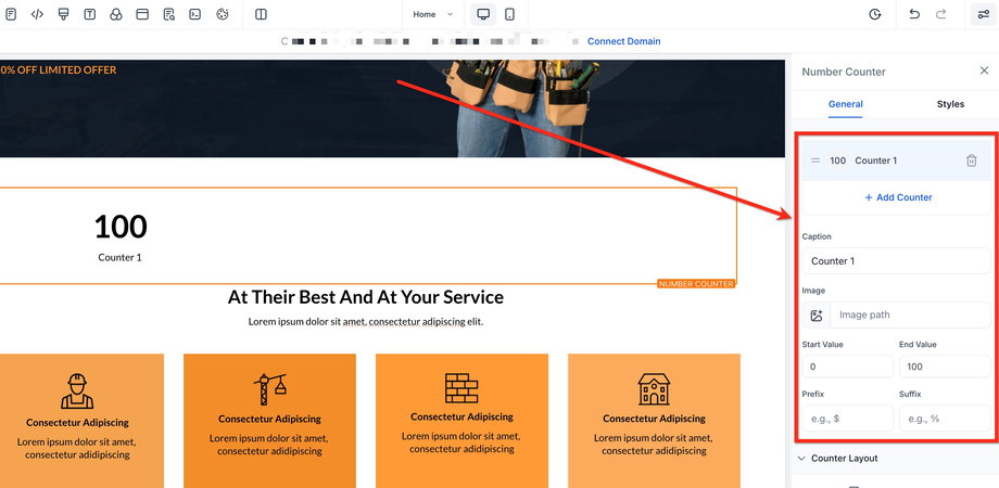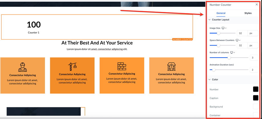 Styling des Number Counter Widgets (Layout anpassen)