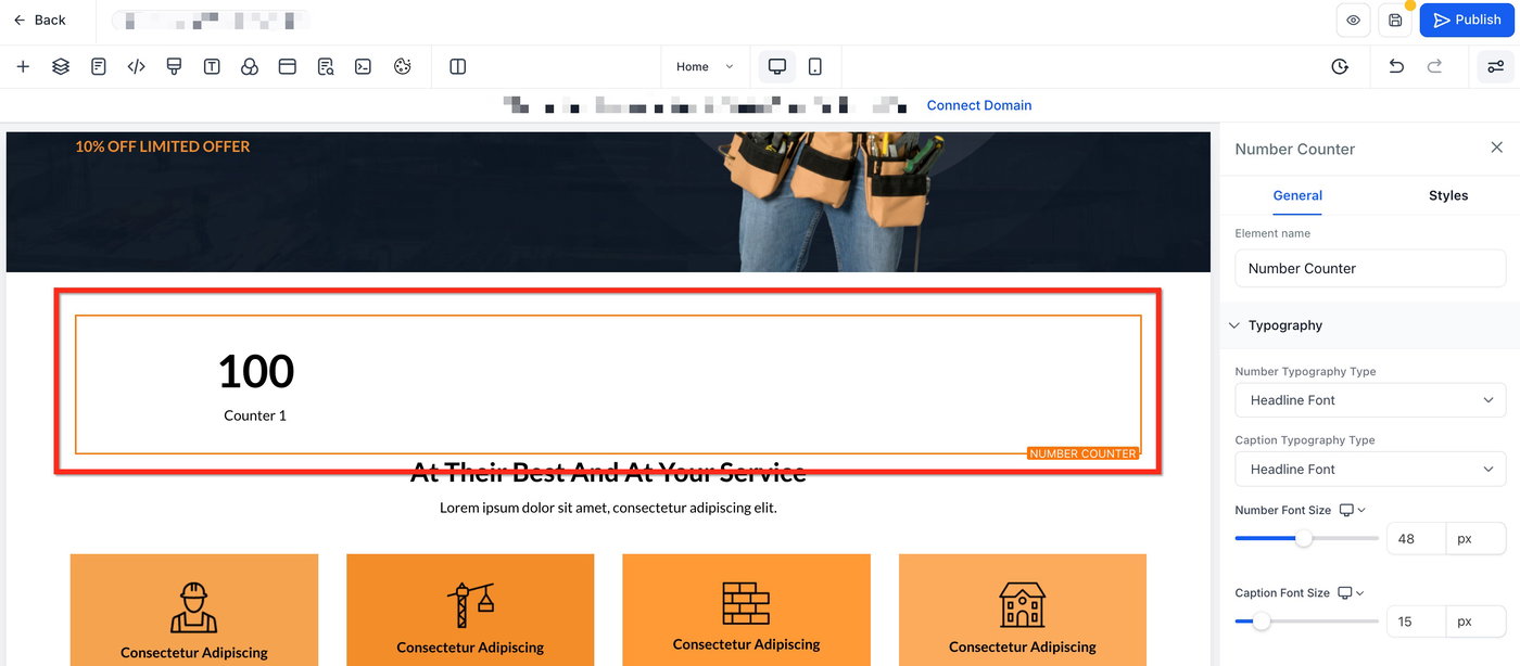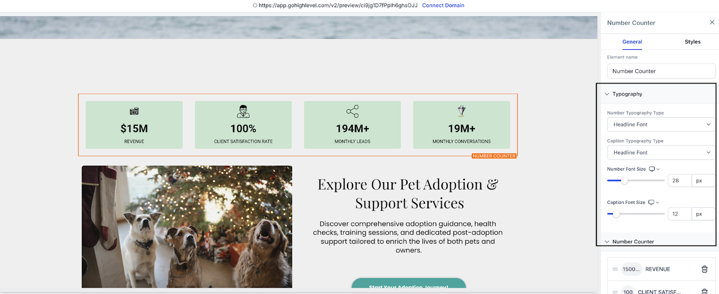 Wie man das Number Counter Widget zu einer Website oder einem Funnel hinzufügt