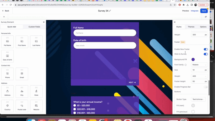 Footer-Anpassung: Gehen Sie im Survey Builder auf den Tab Style.