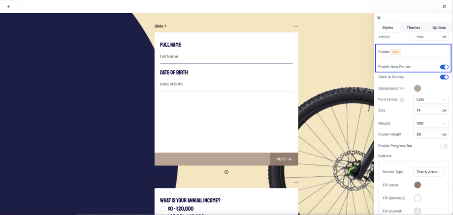 Wie aktiviere ich den neuen Footer im Survey Builder?