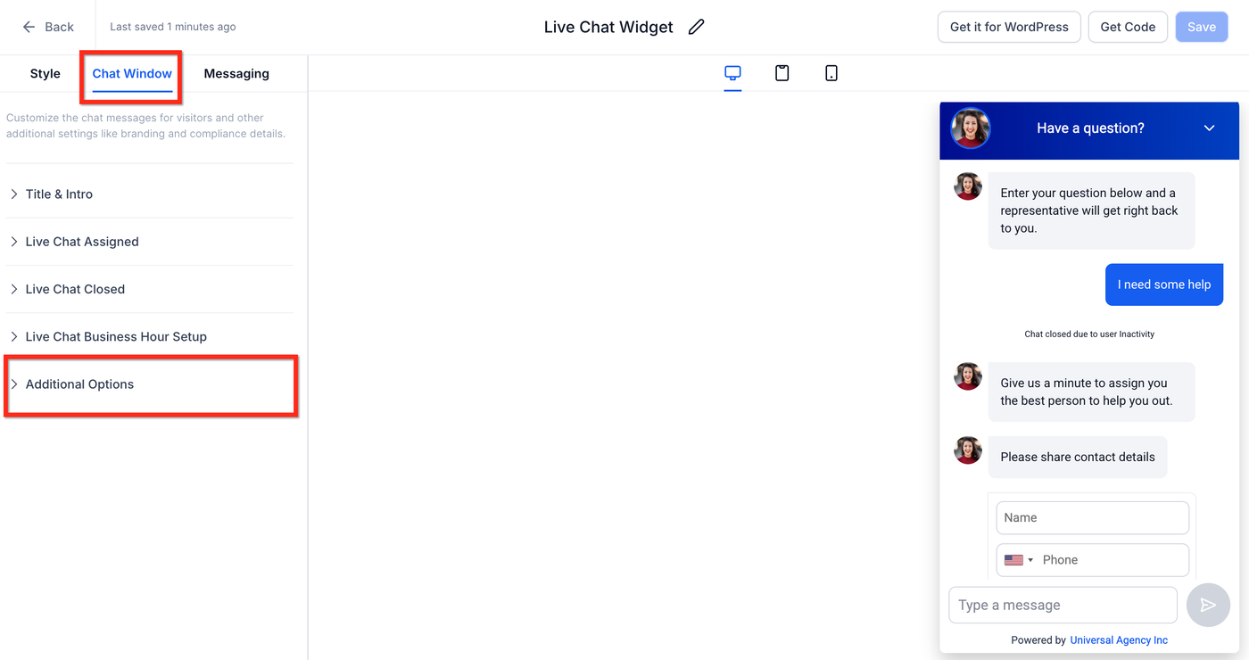 Sie gilt für All-in-One- und Live-Chat-Widgets und ist standardmäßig aktiviert.