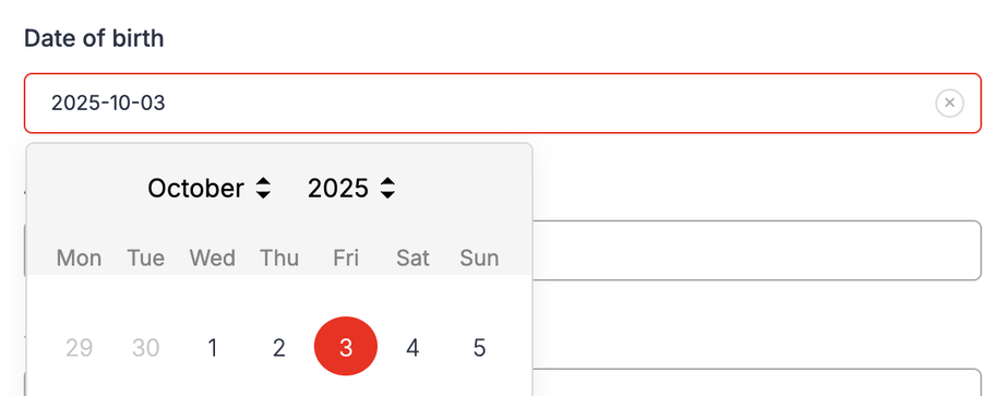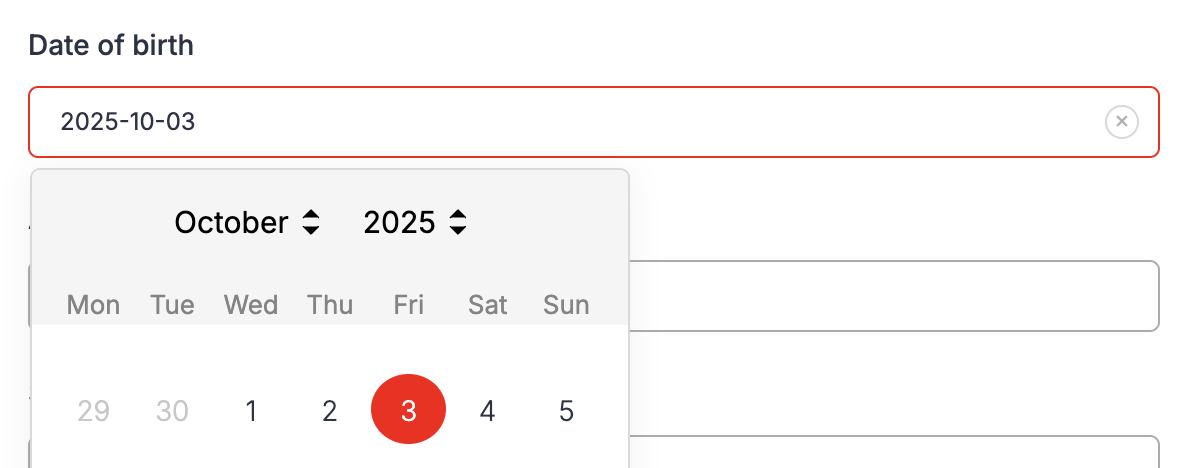 Ihre gewählte Markenfarbe wird automatisch auf Eingabefelder, Dropdowns, Checkboxen und weitere Elemente angewendet — für ein konsistentes Erscheinungsbild.