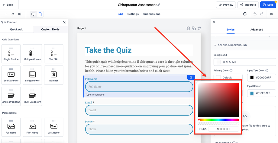 Die Einstellung Primärfarbe steuert, wie Ihre Formularelemente aussehen, wenn Nutzer mit ihnen interagieren.