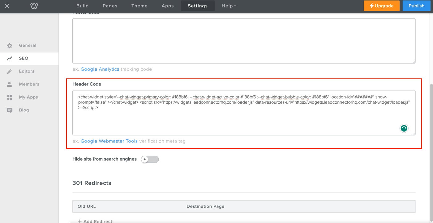 Methode 1: Chat Widget über Header Code Injection hinzufügen