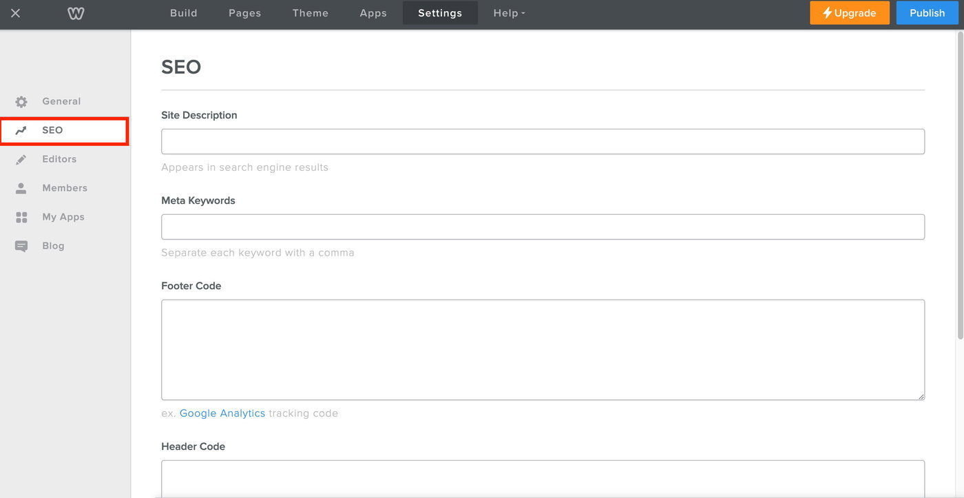 Wähle im linken Menü SEO aus.
