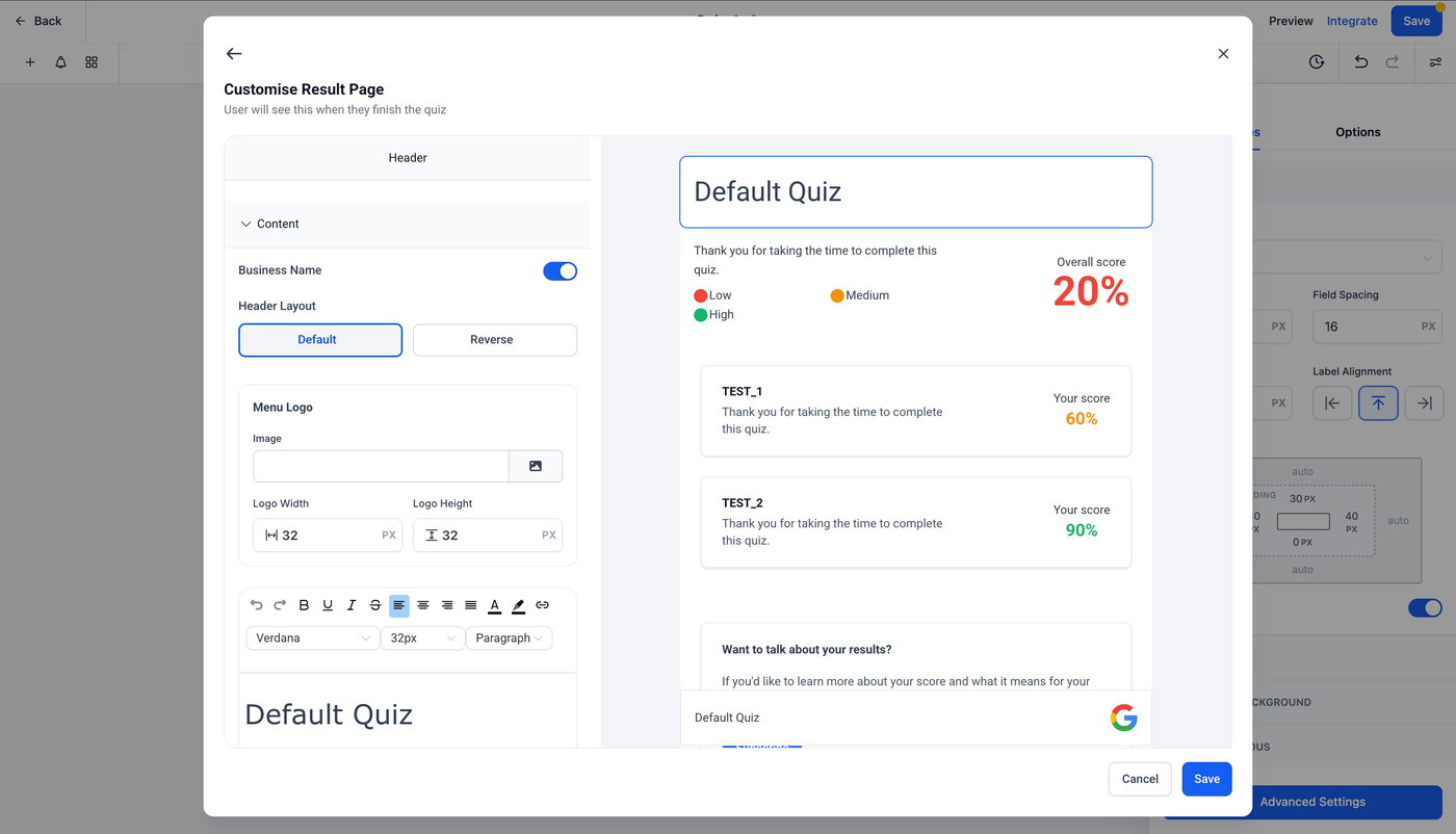 Weitere Informationen findest du unter: Quiz-Ergebnisseiten anpassen