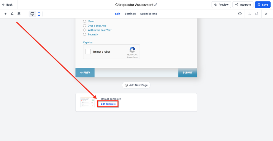 Scrolle bis zum Ende des Quiz zur Results Template.