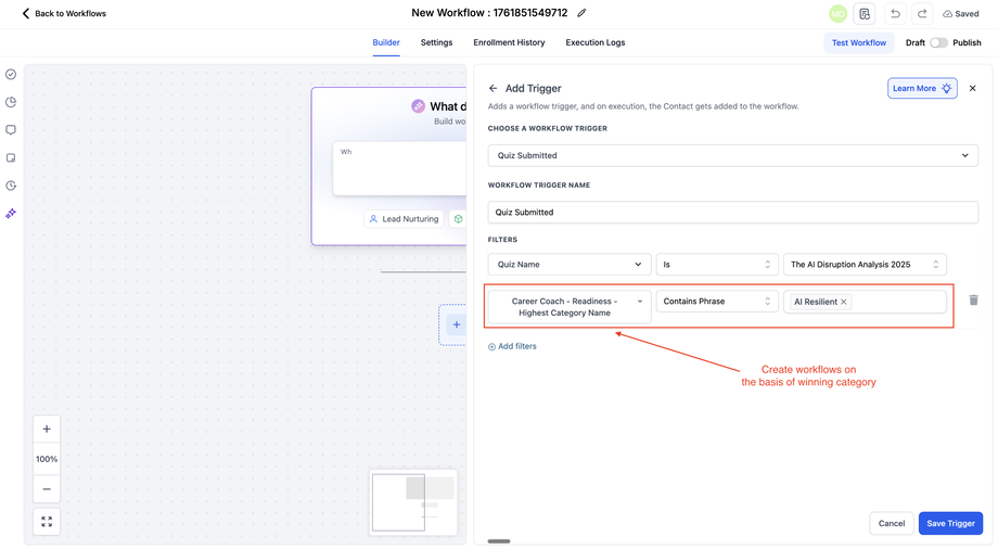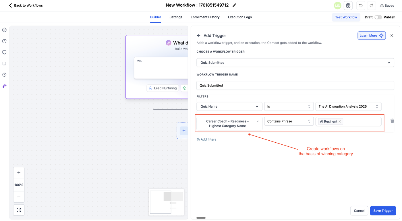 Verwendung von Quiz-Ergebnisfeldern in Workflows & Automatisierungen