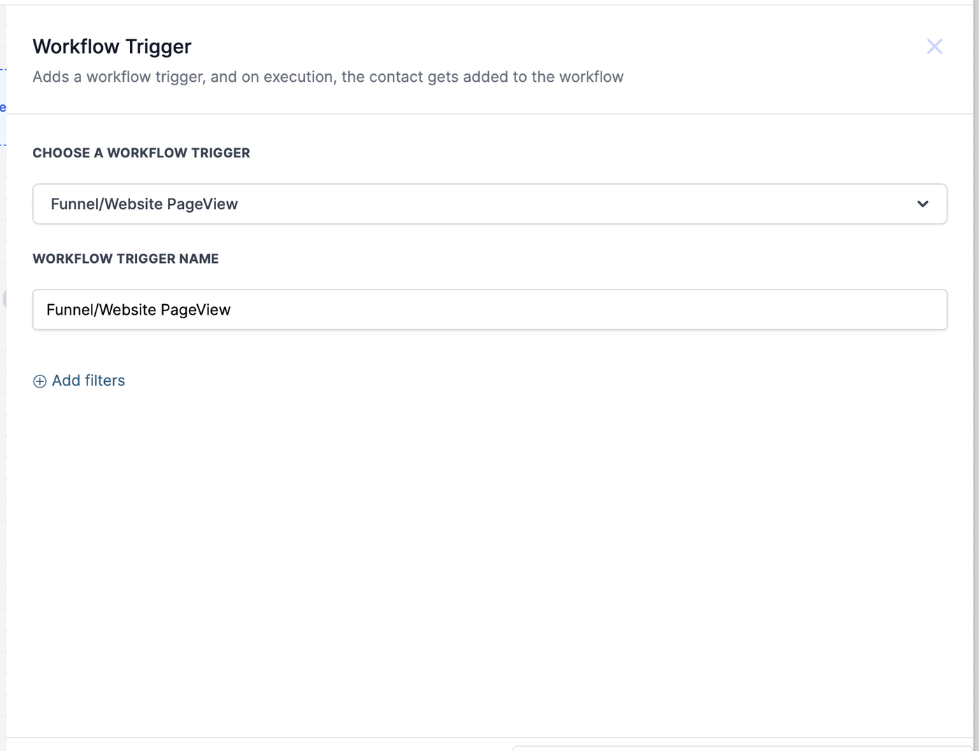 Beachte, dass dieser Trigger ausgelöst wird, wenn ein Kontakt einen Funnel/eine Website angesehen hat.