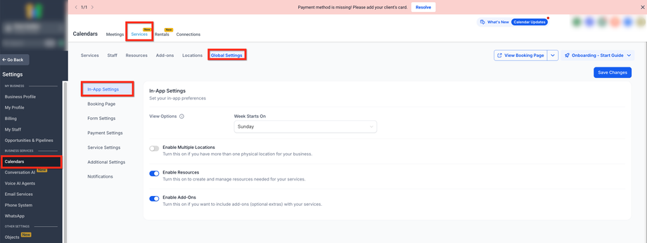 Services unterstützen jetzt vollständig anpassbare E-Mail- und In-App-Benachrichtigungen, sodass Sie steuern können, wie Kunden und Teammitglieder während der gesamten Service-Buchungsreise informiert werden. Sie können Benachrichtigungen für wichtige Service-Ereignisse konfigurieren, Empfänger auswählen, Templates anpassen und service-spezifische Custom Values einfügen – alles über eine zentrale Services-Benachrichtigungseinstellung.