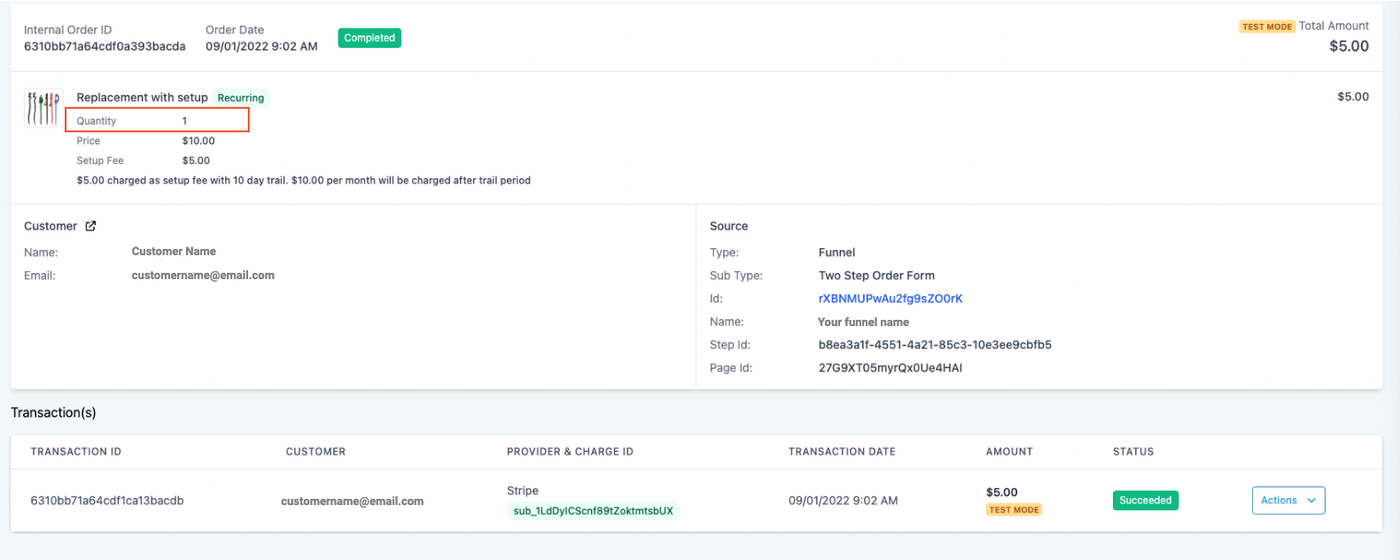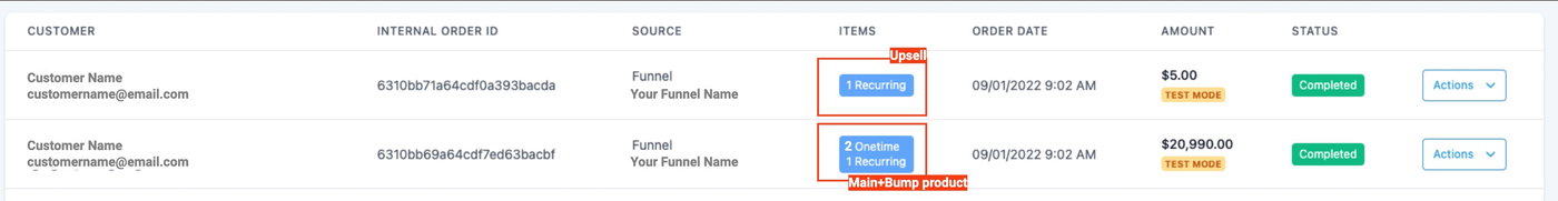 Bestellungen zeigen nun Hauptprodukt, Bump-Produkt inklusive Menge sowie ggf. Upsells als separate Bestellung an.