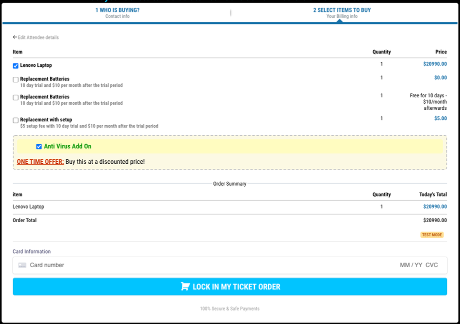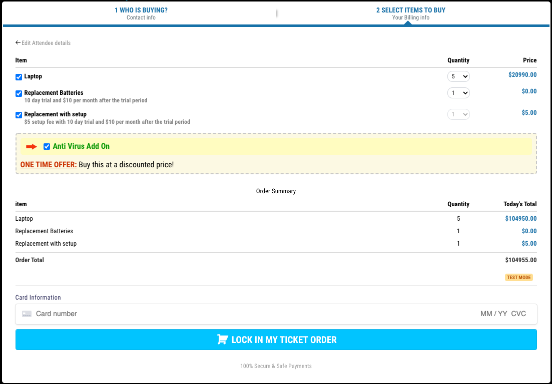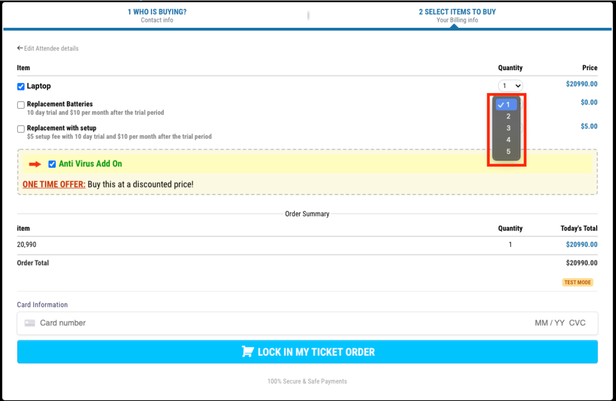 Der Shopping-Cart-Modus ermöglicht es Kunden, mehrere Mengen von Produkten im Bestellformular auszuwählen, bevor sie ihre Kreditkartendaten eingeben und den Kauf abschließen.