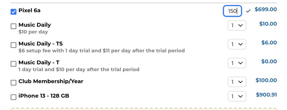 Mehrere Mengen sind nur bei Einmalzahlungen und bei Abonnements mit Einzelmenge möglich.
