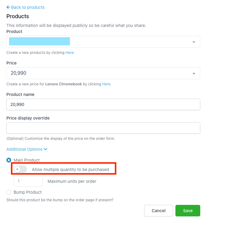 Kann ich mehrere Mengen von Bump-Produkten verkaufen?