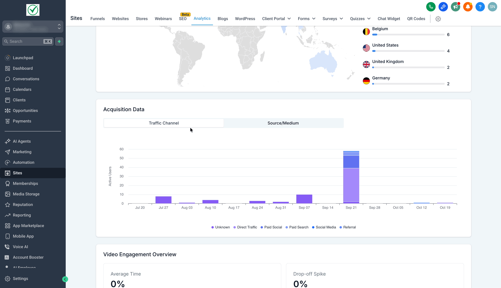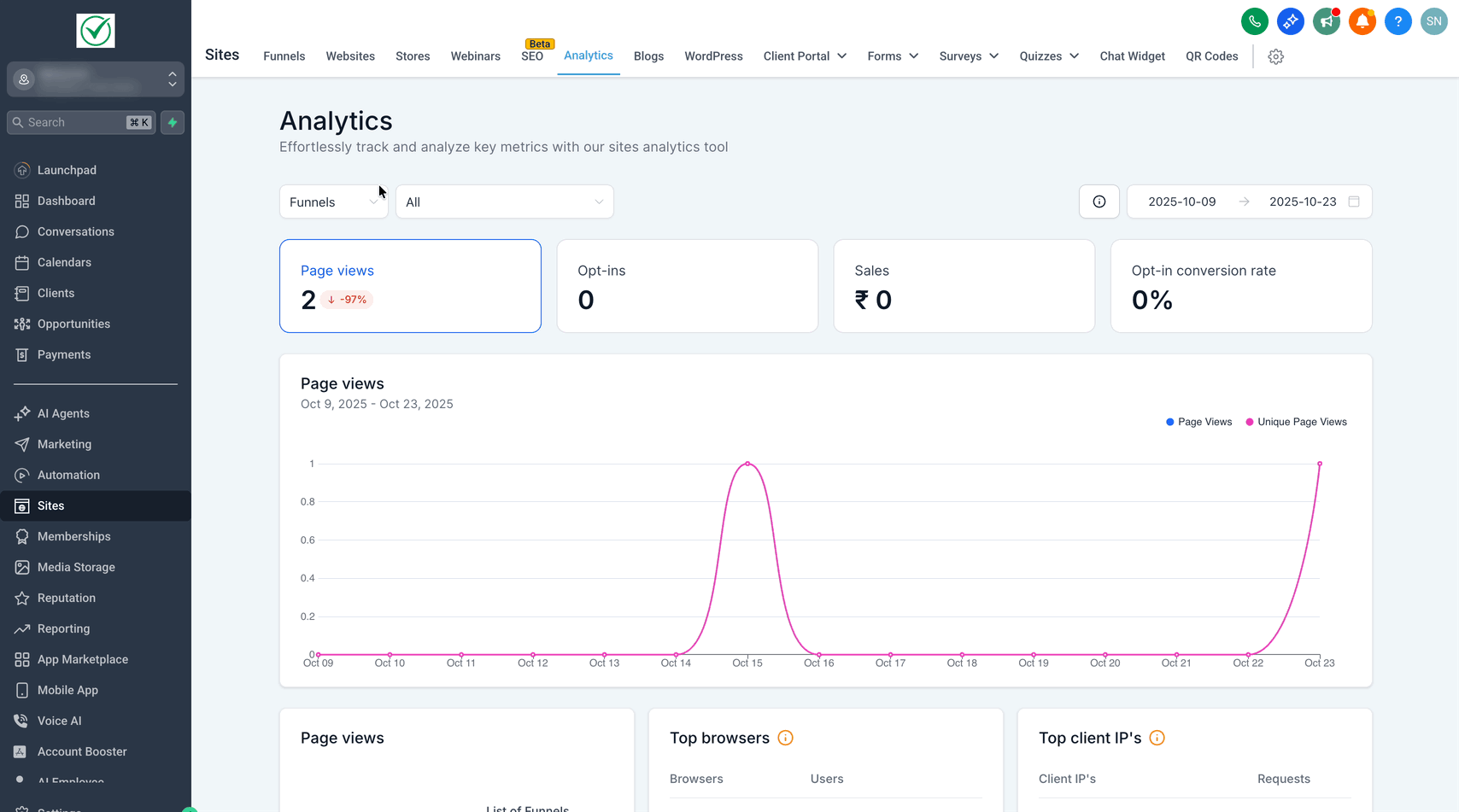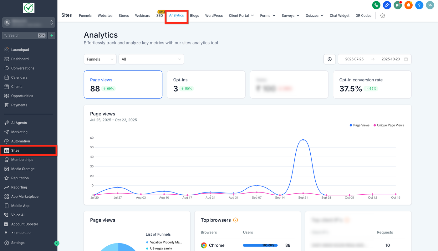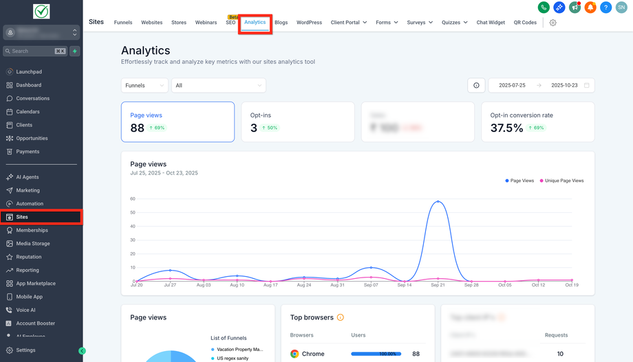 Navigieren Sie zu Sites → Analytics.