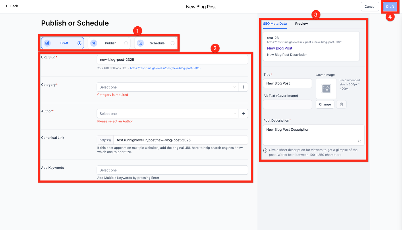 Record Keeping: URL-Slug, Kategorie, Autor, Keywords festlegen.