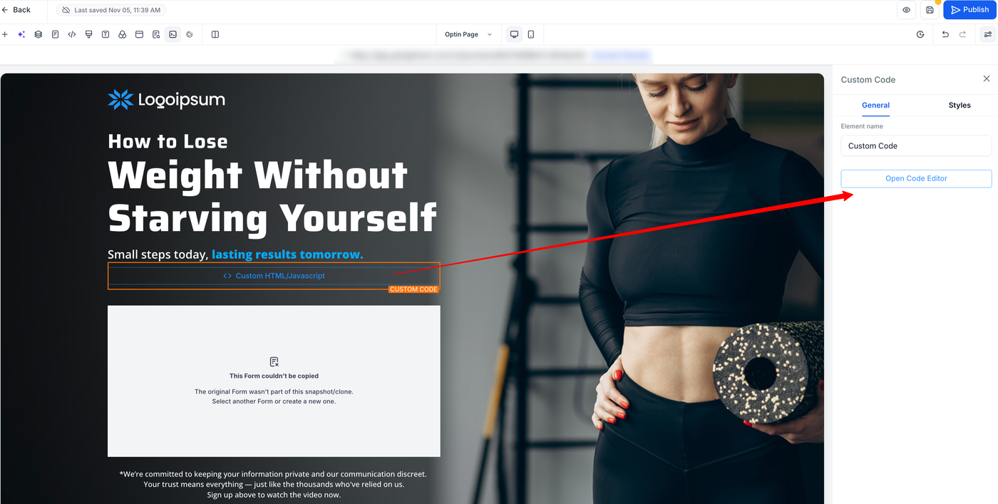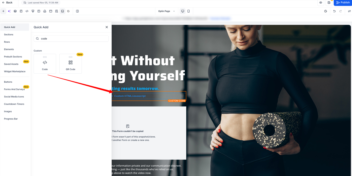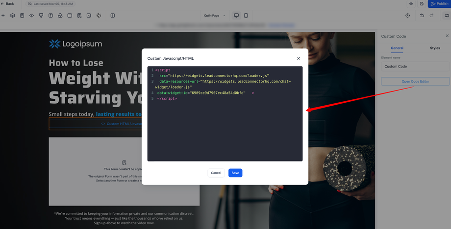 Du kannst das Widget überall auf deiner Website oder in deinem Funnel über ein Code-Element einfügen.