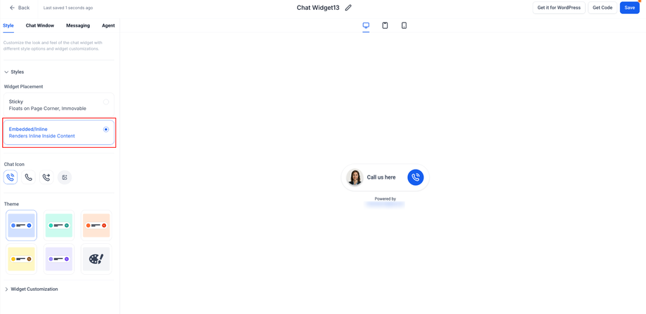 Mit der neuen Platzierungsoption „Embedded/Inline“ kannst du das Widget jetzt direkt innerhalb deines Seiteninhalts anzeigen – genau dort, wo du es haben möchtest, zum Beispiel unter einem Hero-Bereich, neben einem CTA oder innerhalb eines Formularblocks.