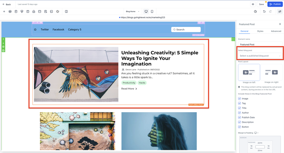 Wählen Sie den Featured Blog Post aus.
