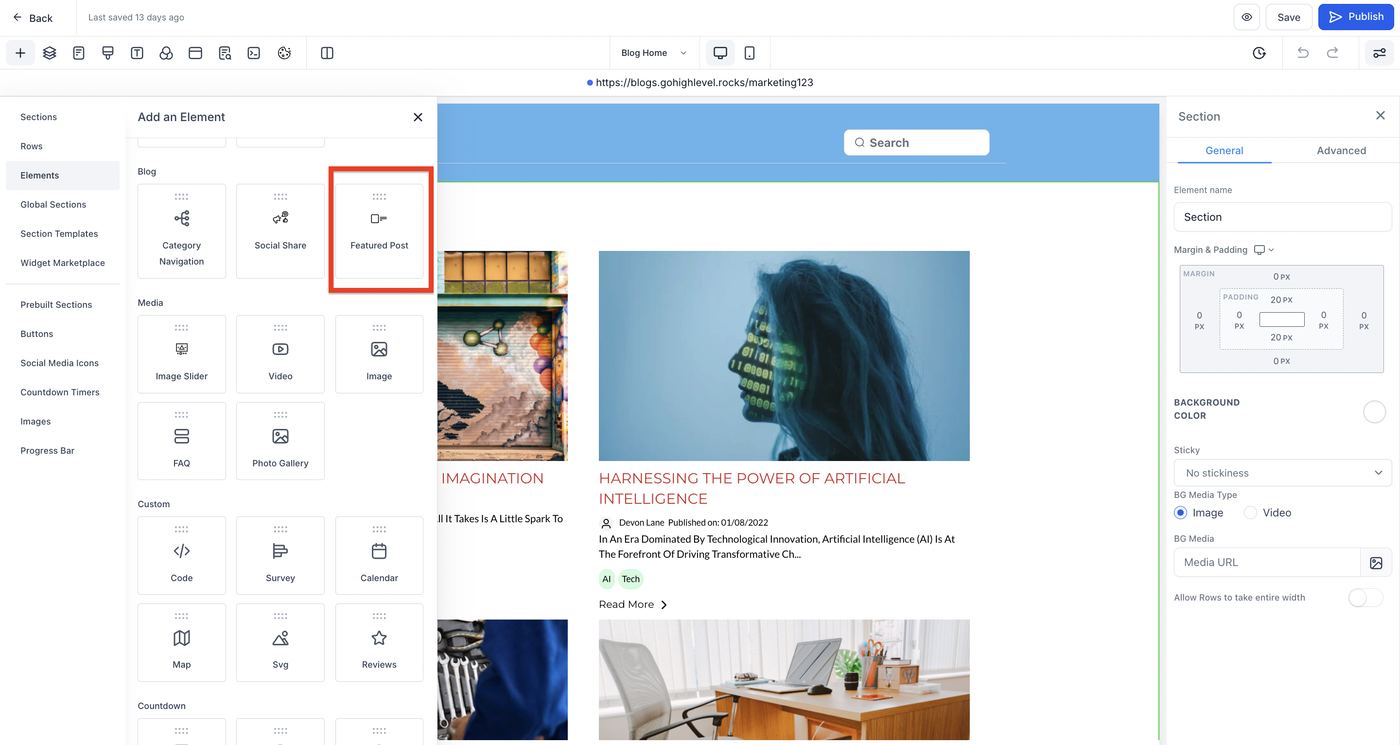 Fügen Sie das Element Featured Post hinzu.
