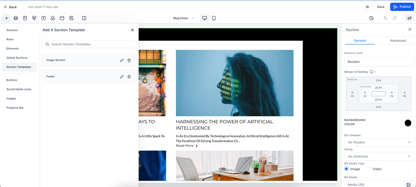 Section Templates werden zwischen Funnels, Websites und Blogs geteilt
