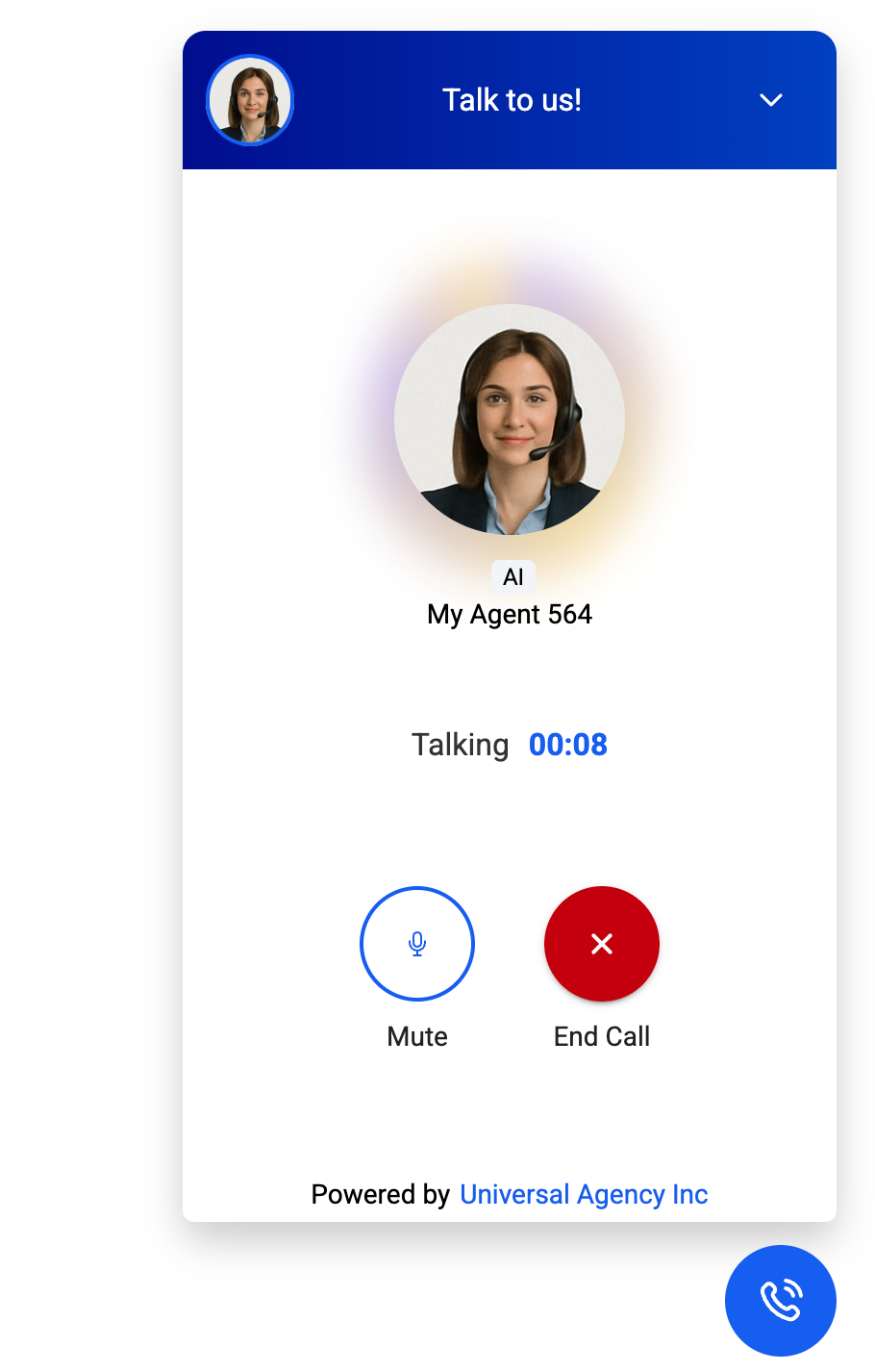 Das Voice AI Chat Widget ermöglicht Besuchern, direkt im Chat Widget über Echtzeit-Sprachgespräche mit deinem AI-Agenten zu kommunizieren.