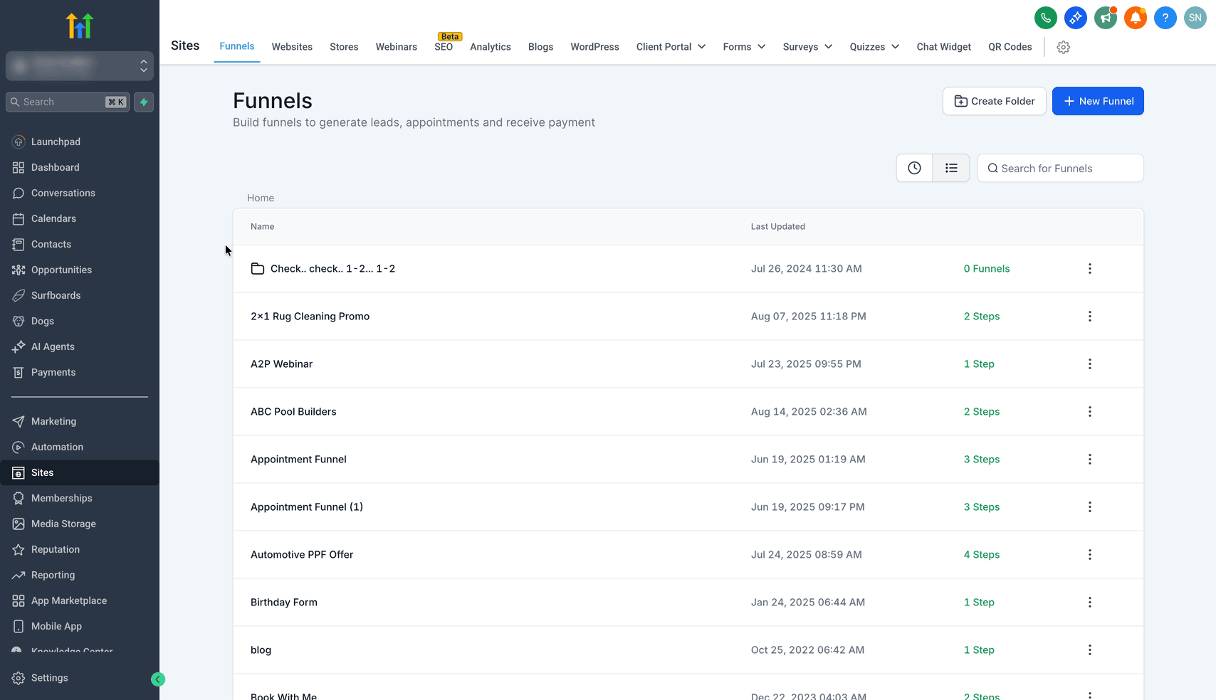 Erstellen Sie einen neuen Funnel/eine neue Website oder bearbeiten Sie einen bestehenden Funnel/eine bestehende Website.