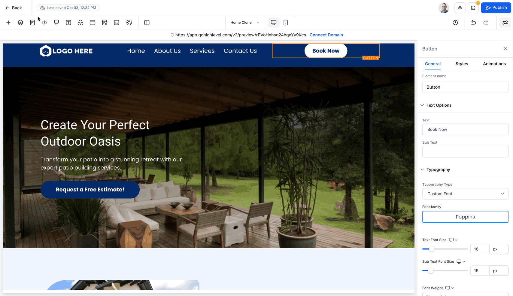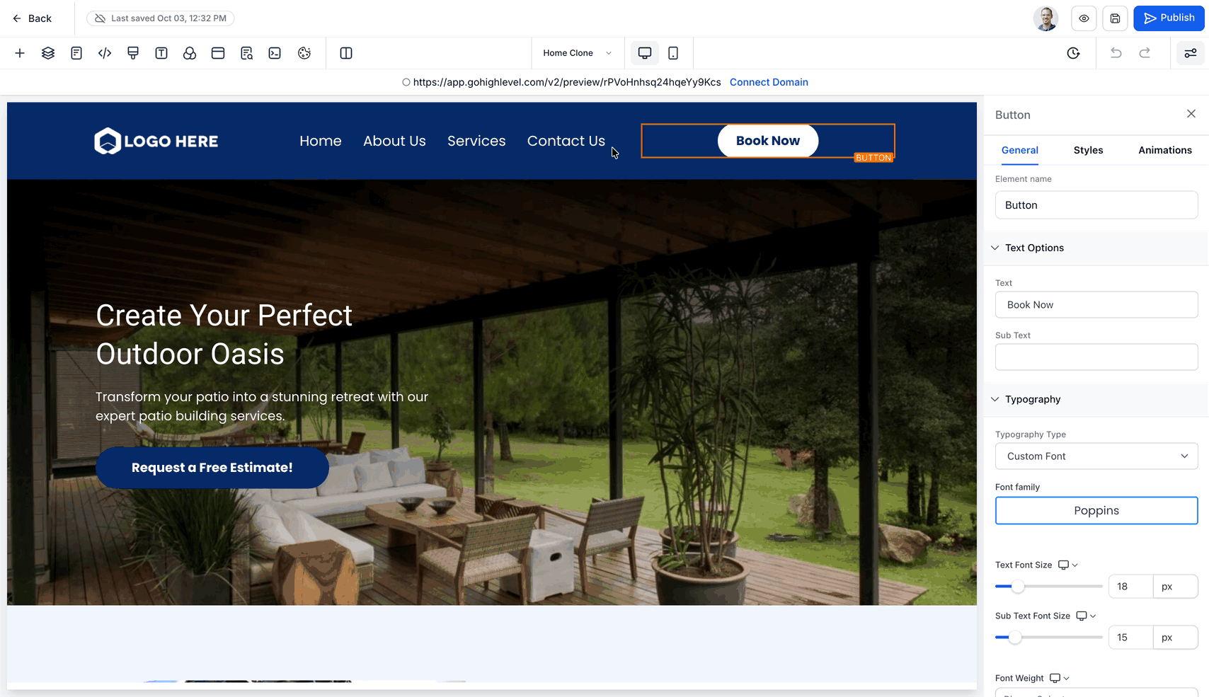 Fügen Sie ein beliebiges Element hinzu oder bearbeiten Sie eines (z. B. Buttons, Text, Bilder).