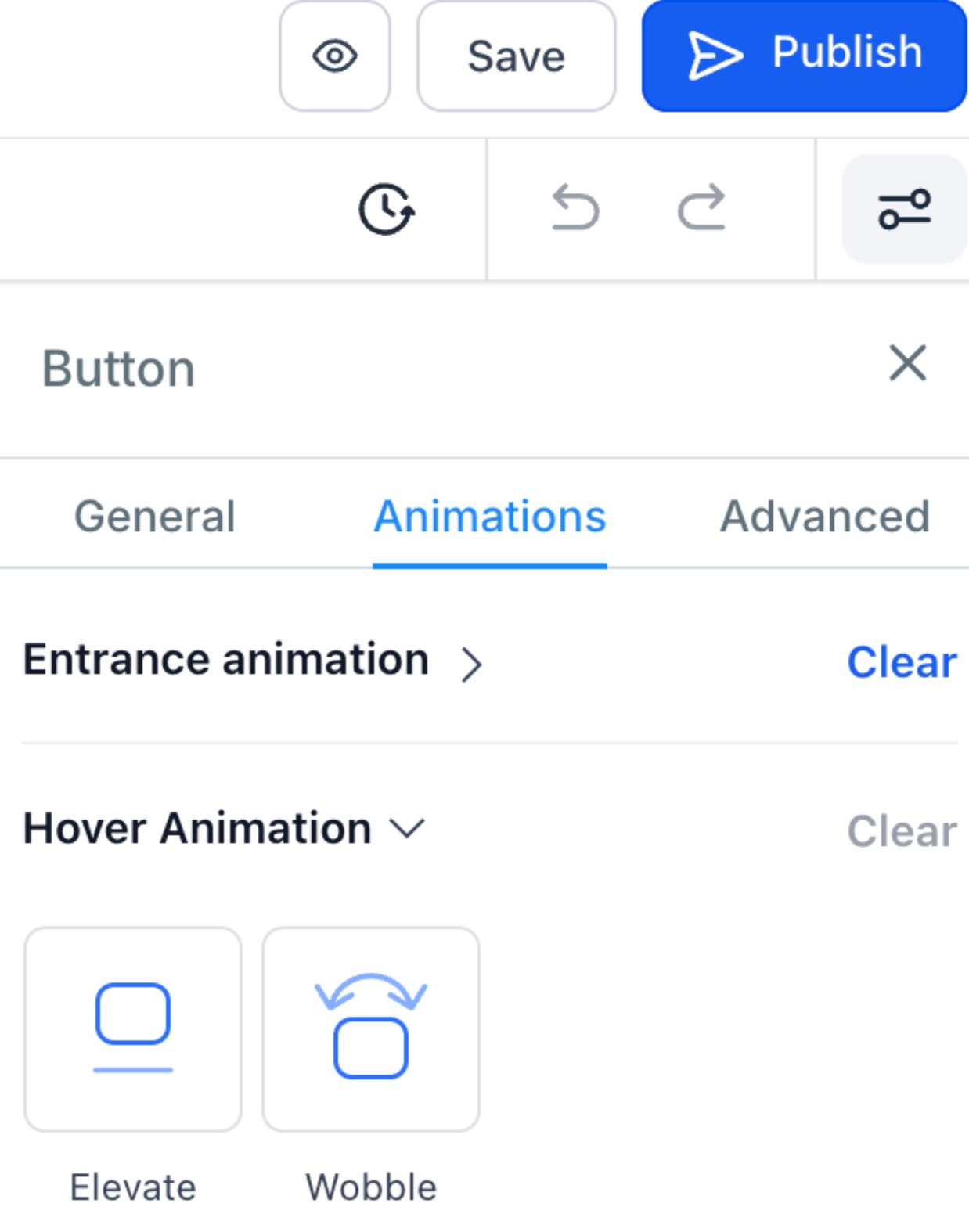 Die Button-Effekte wurden vom Reiter „Erweitert“ in den Animations-Tab verschoben. Dieses Update ist abwärtskompatibel, sodass alle bisherigen Einstellungen unverändert bleiben. Zusätzlich wurden Loop-Animationen für alle vorhandenen Elemente eingeführt, um kontinuierliche Animationseffekte zu ermöglichen.