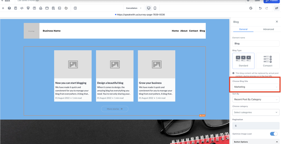 Wenn in Ihrem Funnel oder Ihrer Website ein Blog-List-Element verwendet wird, wählen Sie den neuen Blog aus und veröffentlichen Sie den Funnel bzw. die Website erneut.
