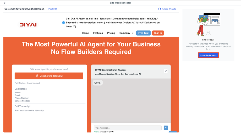 Klicken Sie im Bereich Find issues auf Prozess starten.