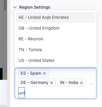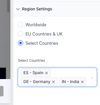 Länder auswählen – Manuelle Auswahl spezifischer Länder, in denen das Banner erscheinen soll.