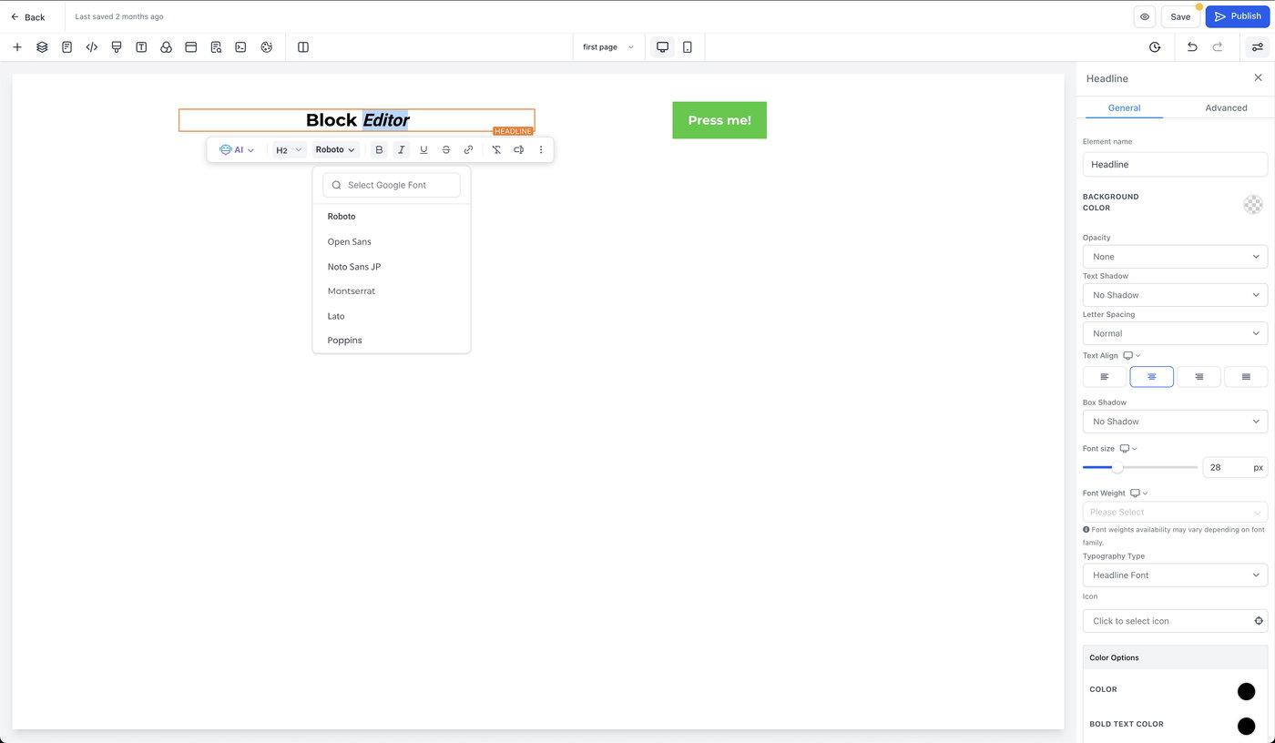 Individuelle Schriftarten für hervorgehobenen Text: Wähle benutzerdefinierte Schriftarten direkt im Block Editor aus, um den Text in markierten Textblöcken zu ändern und so individuellere sowie visuell ansprechendere Designs zu erstellen.