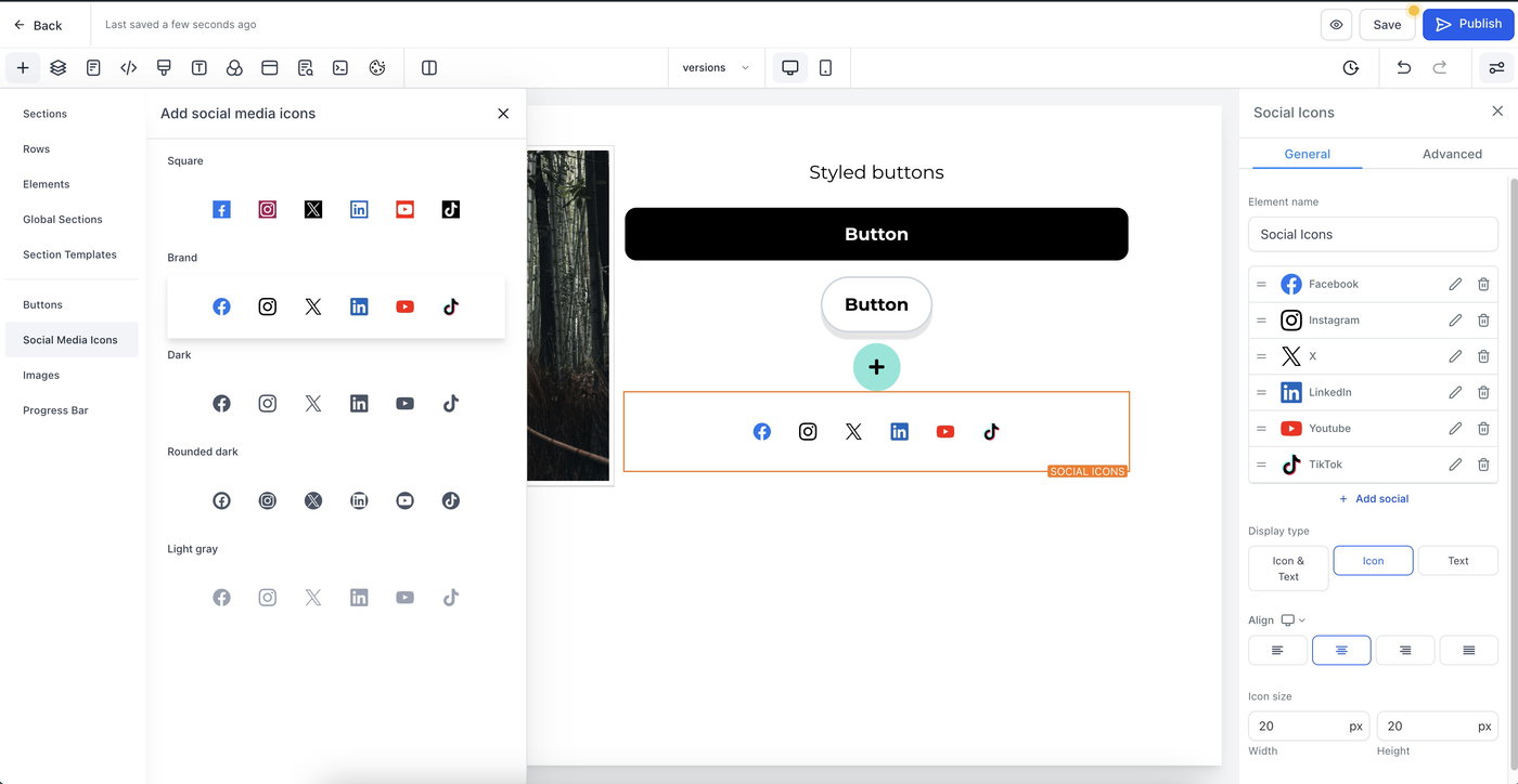 Wir haben etwas Cooles in der linken Seitenleiste veröffentlicht – Prebuilt Elements. Leistungsstarke Design-Elemente, die deinen Designprozess optimieren und die Funktionalität deiner Website stärken. Zu den neuesten Erweiterungen gehören vorgefertigte Buttons, Bilder, Social-Media-Icons und eine Fortschrittsanzeige.