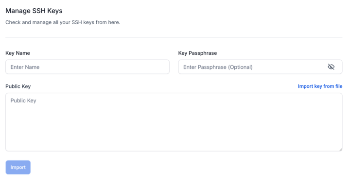 Gehe zu SSH Keys Manager → Import New Key