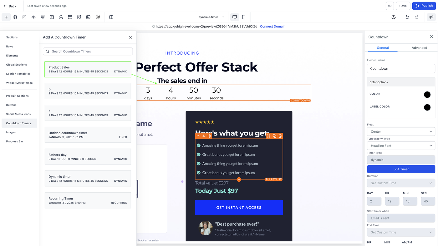 Wir freuen uns, den Dynamic Timer aus dem Email Builder jetzt auch in Funnels und im Website-Builder vorstellen zu können. Diese leistungsstarke Funktion ermöglicht es Nutzern, personalisierte Countdown-Timer zu erstellen, die zwischen E-Mails und Live-Seiten synchronisiert werden. Egal, ob du Dringlichkeit für einen E-Commerce-Sale, eine Event-Anmeldung, einen Produkt-Launch oder ein Angebot mit begrenzter Verfügbarkeit erzeugen möchtest – der Dynamic Timer sorgt für Konsistenz bei Timing und Messaging.