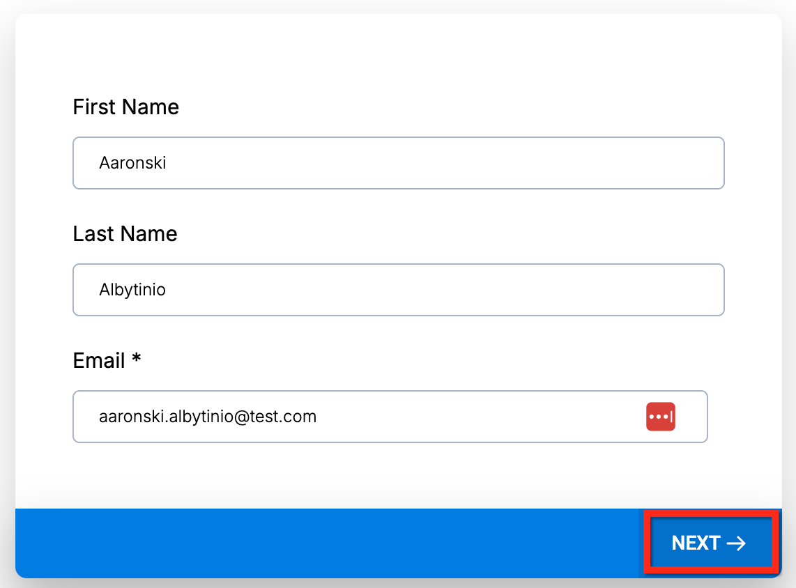 Der Teilnehmer füllt die erste Folie aus und klickt auf Next.