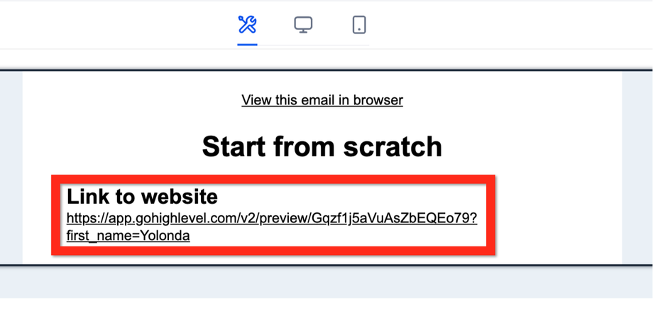 Nachdem deine Seite URL-Parameter enthält, solltest du sicherstellen, dass diese Parameter auch in den Links zu dieser Seite enthalten sind. Zum Beispiel in einer E-Mail kannst du die gleiche URL verwenden, die du zuvor manuell bearbeitet hast – sie funktioniert dann genauso.