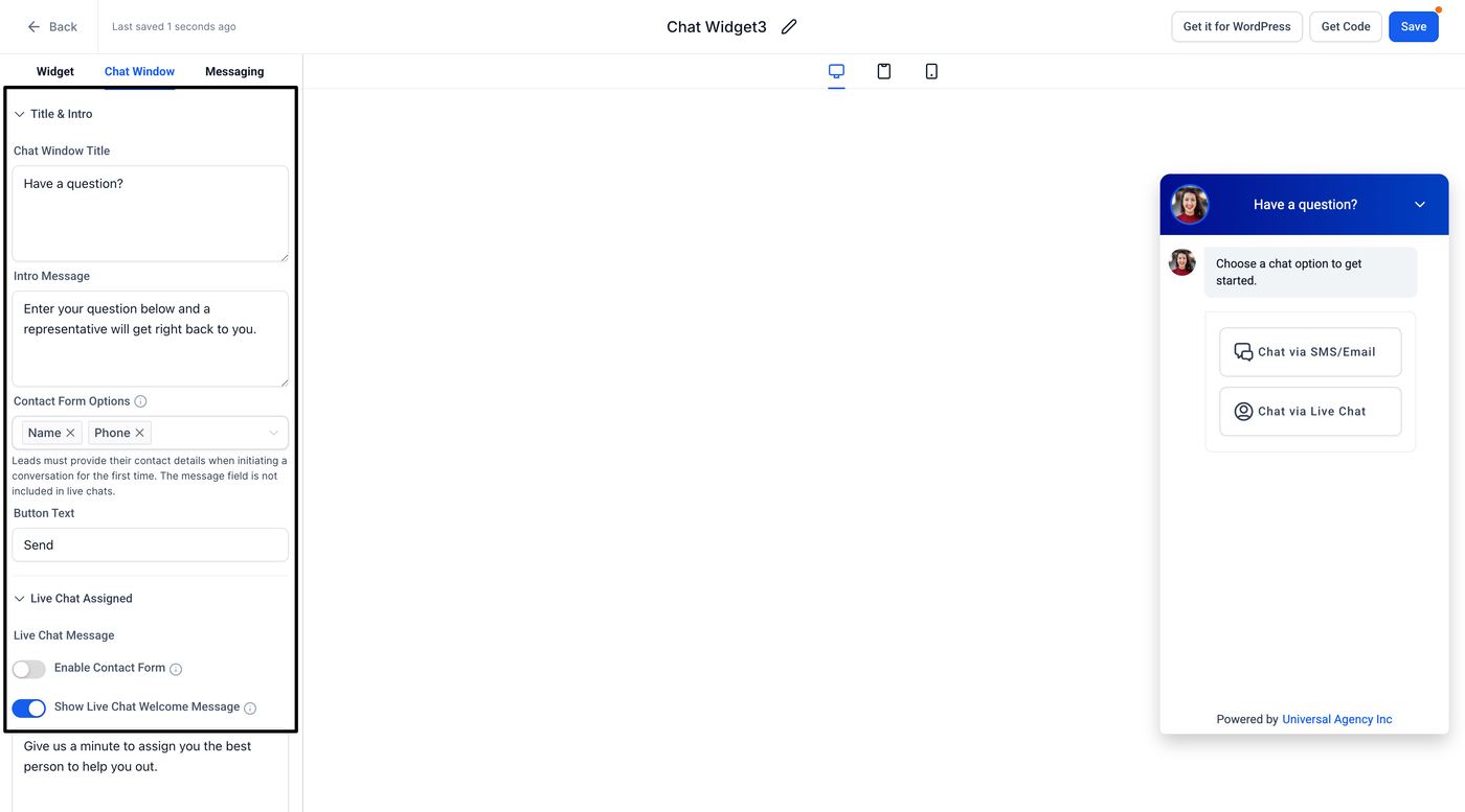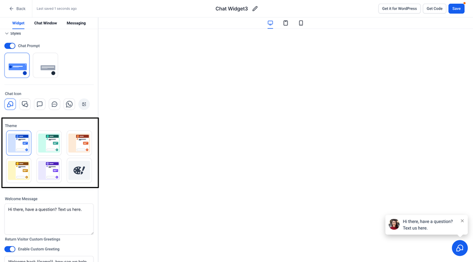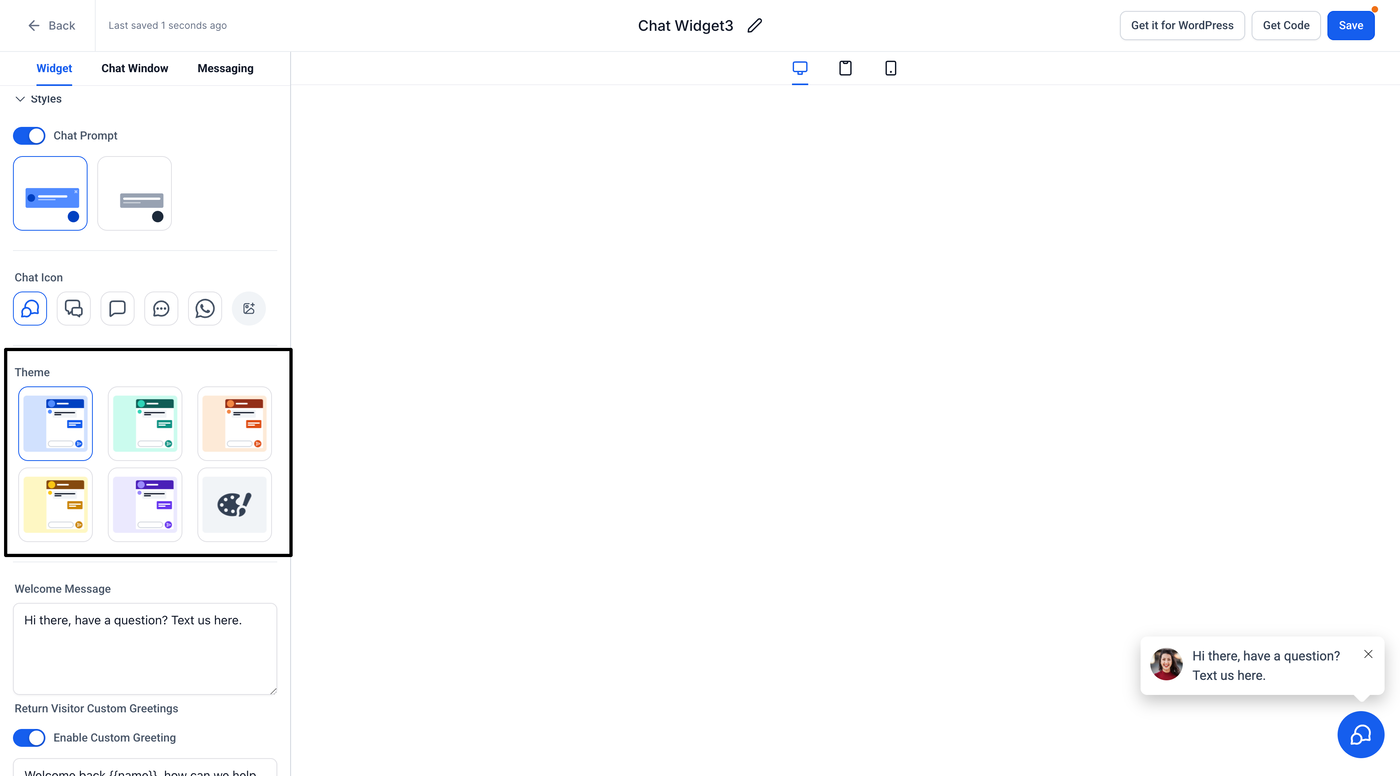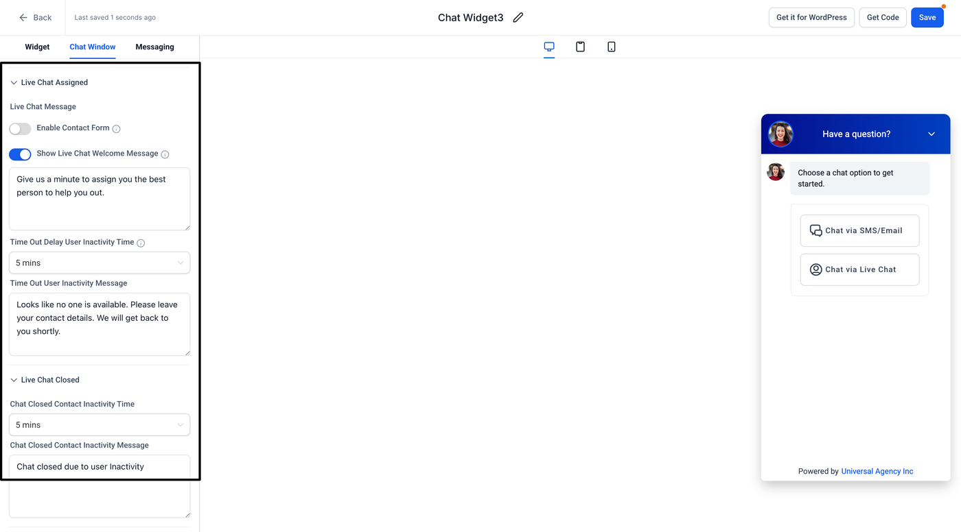 Live Chat im All-in-One Chat unterstützt außerdem zwei bearbeitbare Prompts im Chat Window Tab: