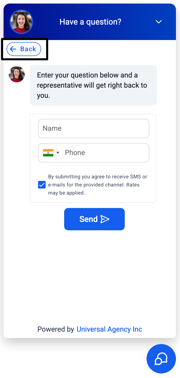 Besucher können zwischen aktivierten Kanälen wechseln (z. B. Live Chat, SMS/Email, WhatsApp, Facebook, Instagram oder Voice AI).