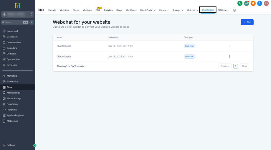 Stelle sicher, dass du die entsprechenden Berechtigungen hast, um Chat Widgets in deinem Account zu erstellen oder zu bearbeiten.