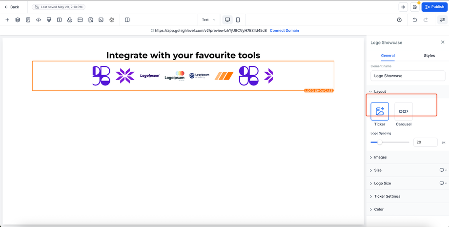 Dieser Artikel zeigt, wie du Logos in deinen Funnels oder Websites mit dem neuen Logo Showcase Element präsentierst. Egal, ob du Kundenlogos, Partner oder Zertifizierungen hervorheben möchtest – dieses flexible Element unterstützt beeindruckende visuelle Darstellungen im Ticker- oder Karussell-Modus.