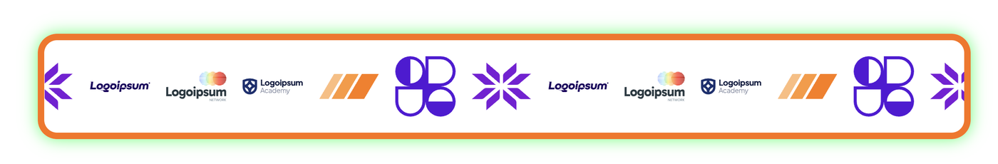 Ideal für hohe Logo-Sichtbarkeit auf kompakter Fläche – die Logos scrollen horizontal in einer Endlosschleife.