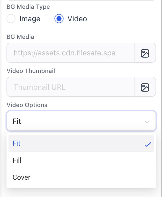 Fit, Fill und Cover sind Optionen, mit denen Sie steuern können, wie der Video-Hintergrund innerhalb eines Abschnitts, einer Reihe oder Spalte angezeigt wird. Diese Optionen bestimmen, wie das Video skaliert oder zugeschnitten wird, um in den verfügbaren Bereich zu passen.