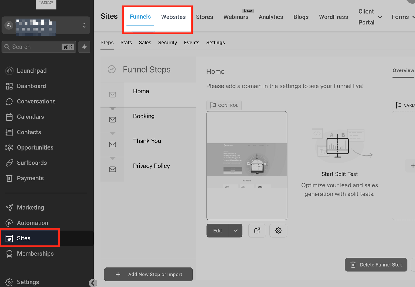 Gehen Sie zu Ihrem Funnel- oder Website-Builder.