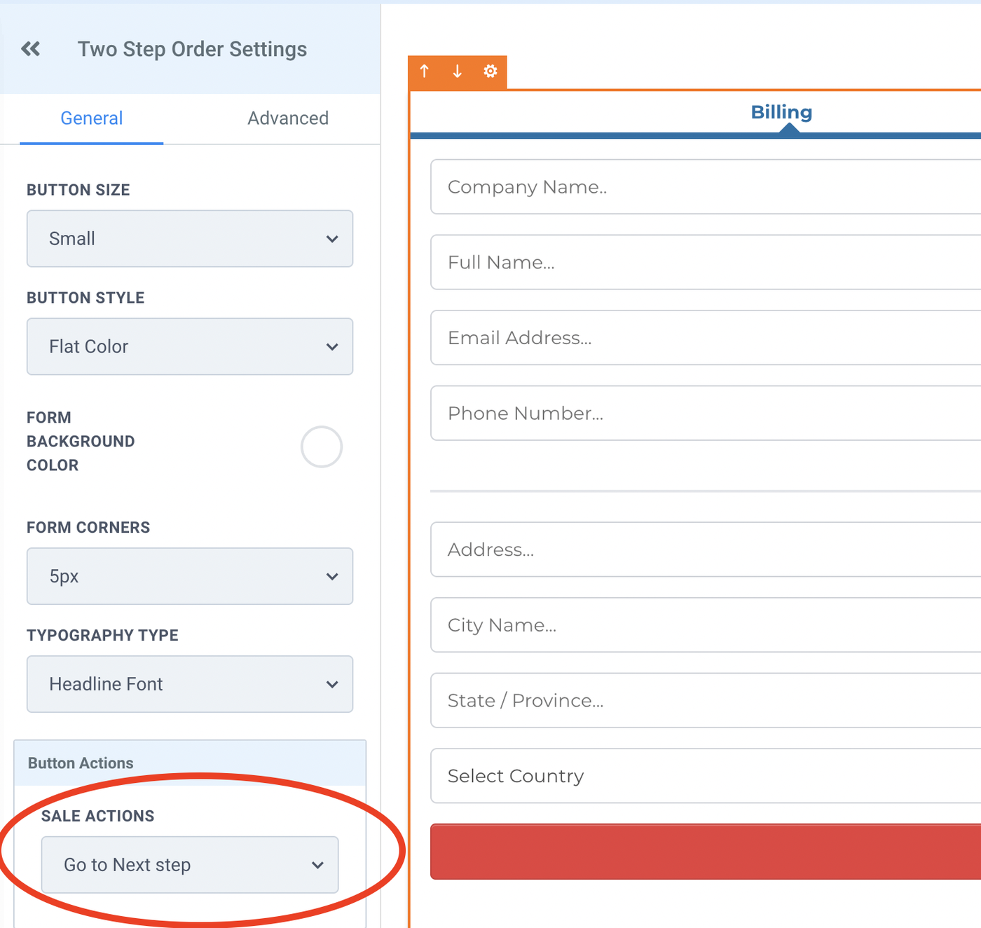 Die Weiterleitungsaktion (Redirect Action) in den Einstellungen des Bestellformulars ändern.