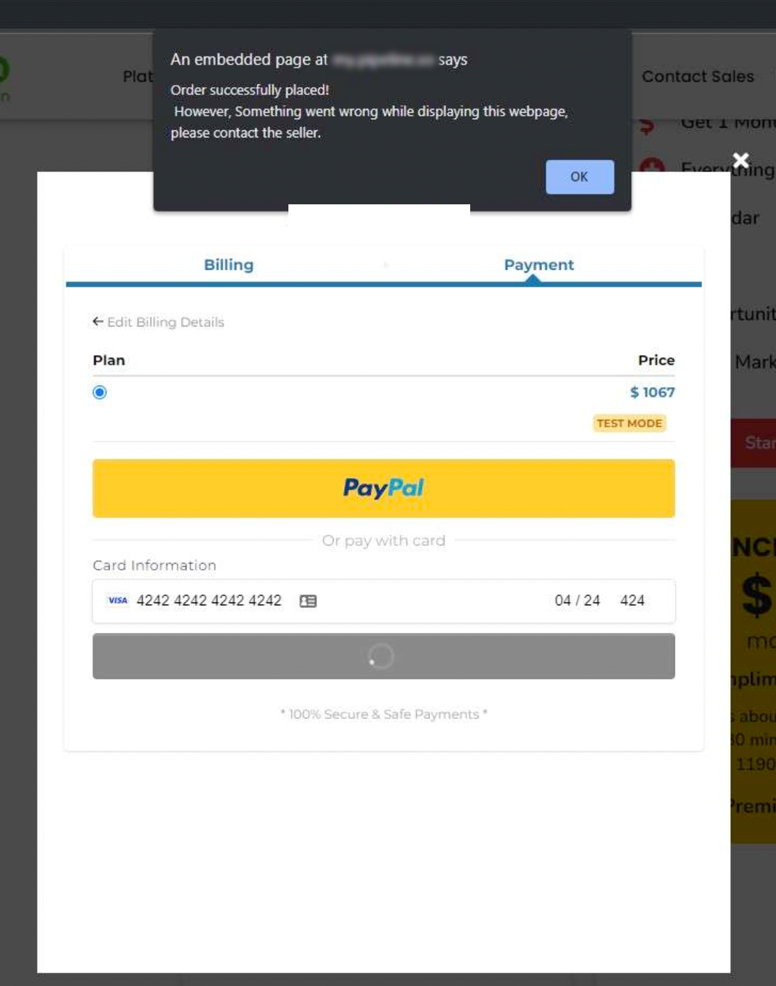 However, Something went wrong while displaying this webpage, please contact the seller.“