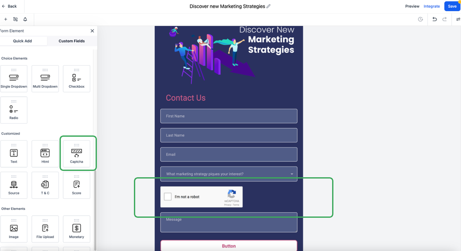 Gehen Sie zu Forms → Custom Fields → CAPTCHA