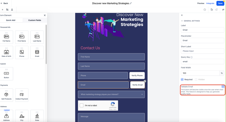 Stellen Sie sicher, dass nur echte Nutzer Ihre Formulare ausfüllen, indem Sie die Validierung von E-Mail-Adressen und Telefonnummern aktivieren. Das hilft dabei: