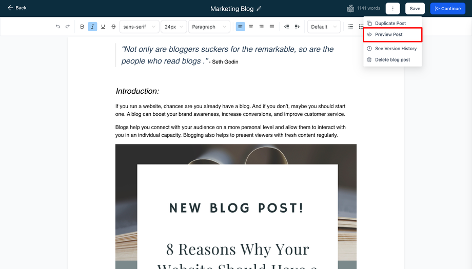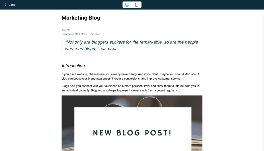 Vorschau deines Blog-Beitrags innerhalb des Builders